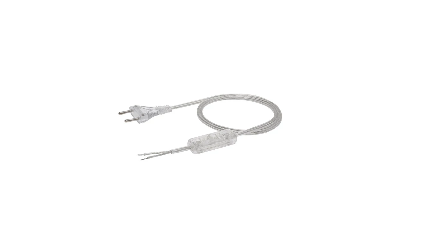 Przewód z wyłącznikiem z płaską wtyczką b/u H03VVH2-F 2x0,75 transparentny S-13W-0,75-2-0 /2m/