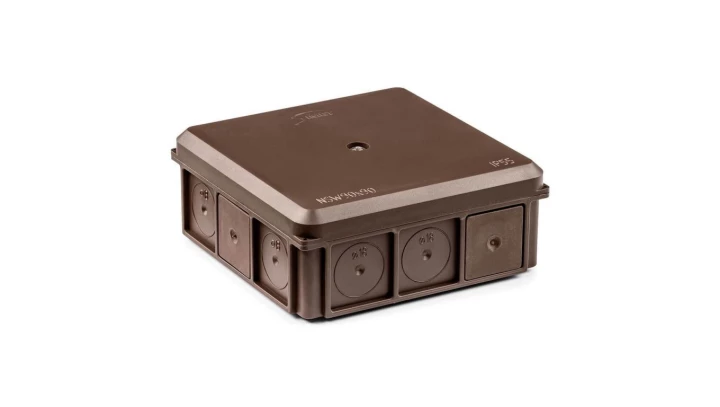 Puszka naścienna 90x37x90mm IP55 z dławnicami z wkrętem brązowa NSW90x90 +3szt. złączka SCL IDEALNA (zestaw promocyjny) 35418715