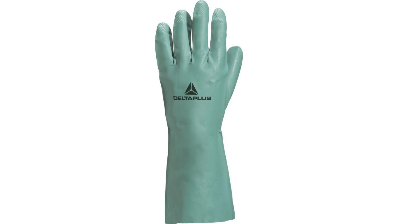 Rękawice z nitrylu flokowane dł. 33 cm gr. 040 mm kolor zielony rozmiar 9/10 MAIN VE802VE09