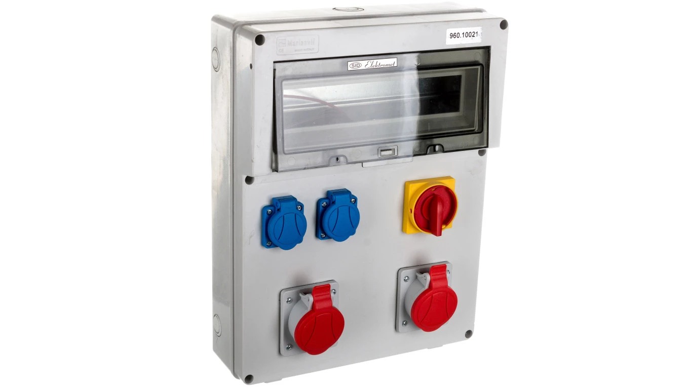 Rozdzielnica RSE-05 z rozłącznikiem 0-1 40A okienko 14 modułów okablowana 2x16A 3P+N+Z 400V 2x16A 2P+Z 250V IP54 942102