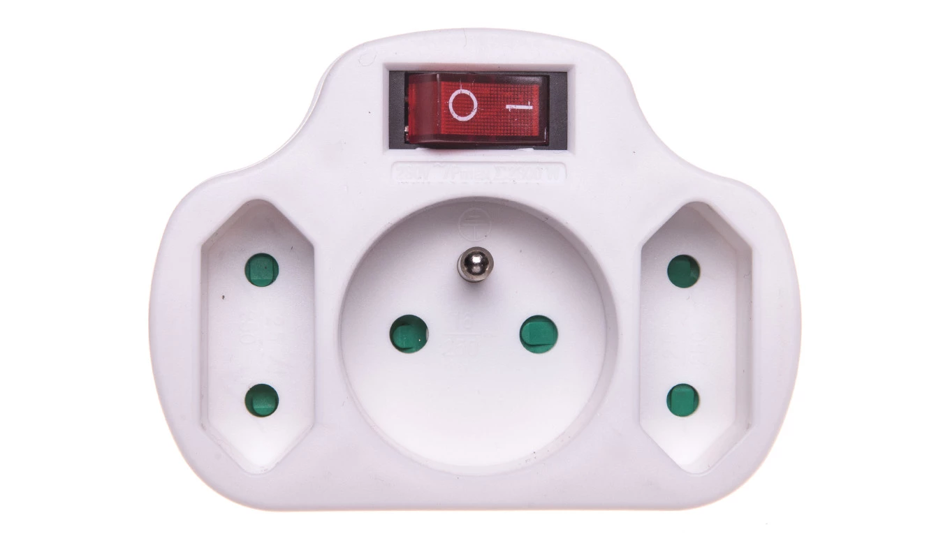 Rozgałęźnik wtyczkowy z wyłącznikiem 1-gniazdo z/u + 2x Euro biały P0029