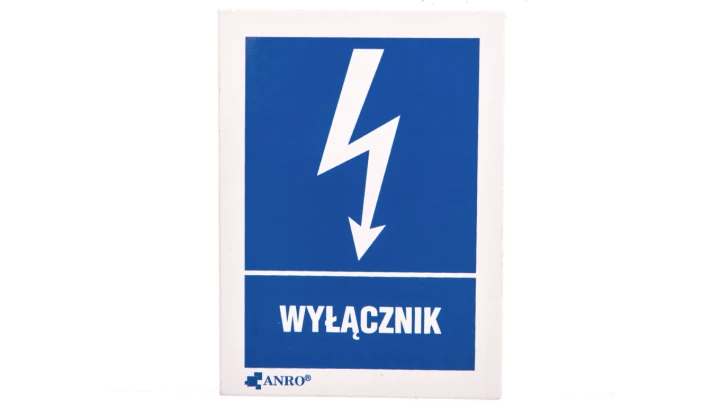 Samoprzylepna tabliczka ostrzegawcza /WYŁĄCZNIK 52X74/ 10EIA/Q1/F
