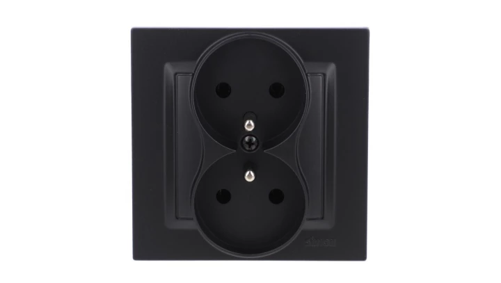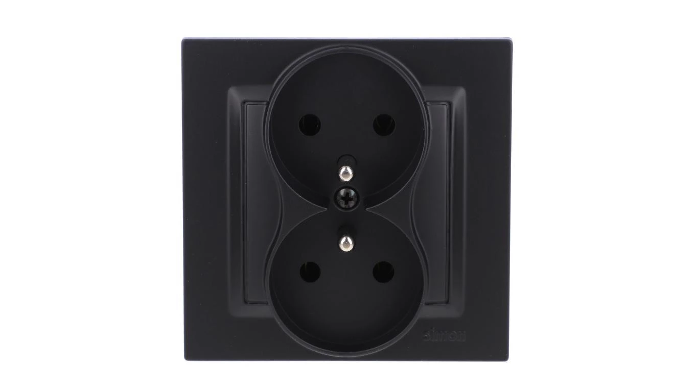 Simon 10 Gniazdo wtyczkowe z uziemieniem podwójne, monoblok, 16A, 250V, zaciski śrubowe kompletne, czarny mat CGZ2/49