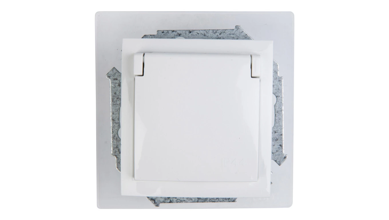 Simon 15 Gniazdo bryzgoszczelne z/u IP44 z klapką pełną białe 1591940-030