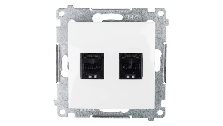 Simon 54 Gniazdo komputerowe podwójne 2xRJ45 kat.6 z przesłoną białe D62.01/11