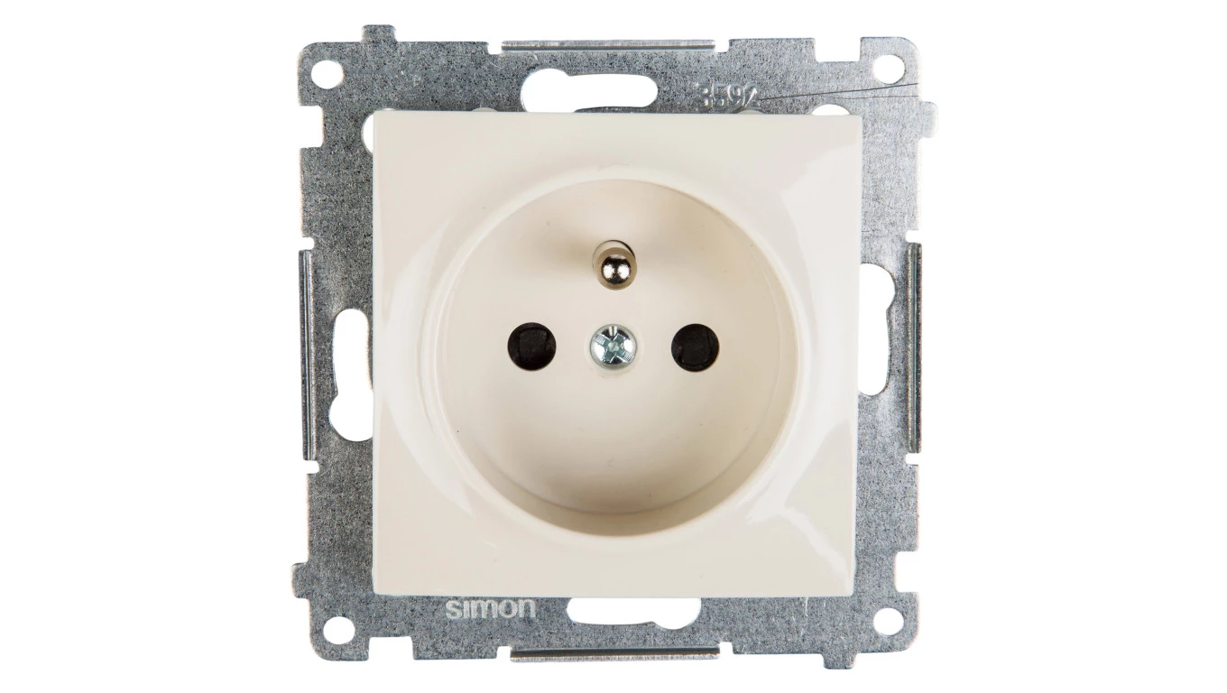Simon 54 Gniazdo pojedyncze z/u przesłony torów prądowych 16A IP20, szybkozłącza, kremowe DGZ1CZ.01/41