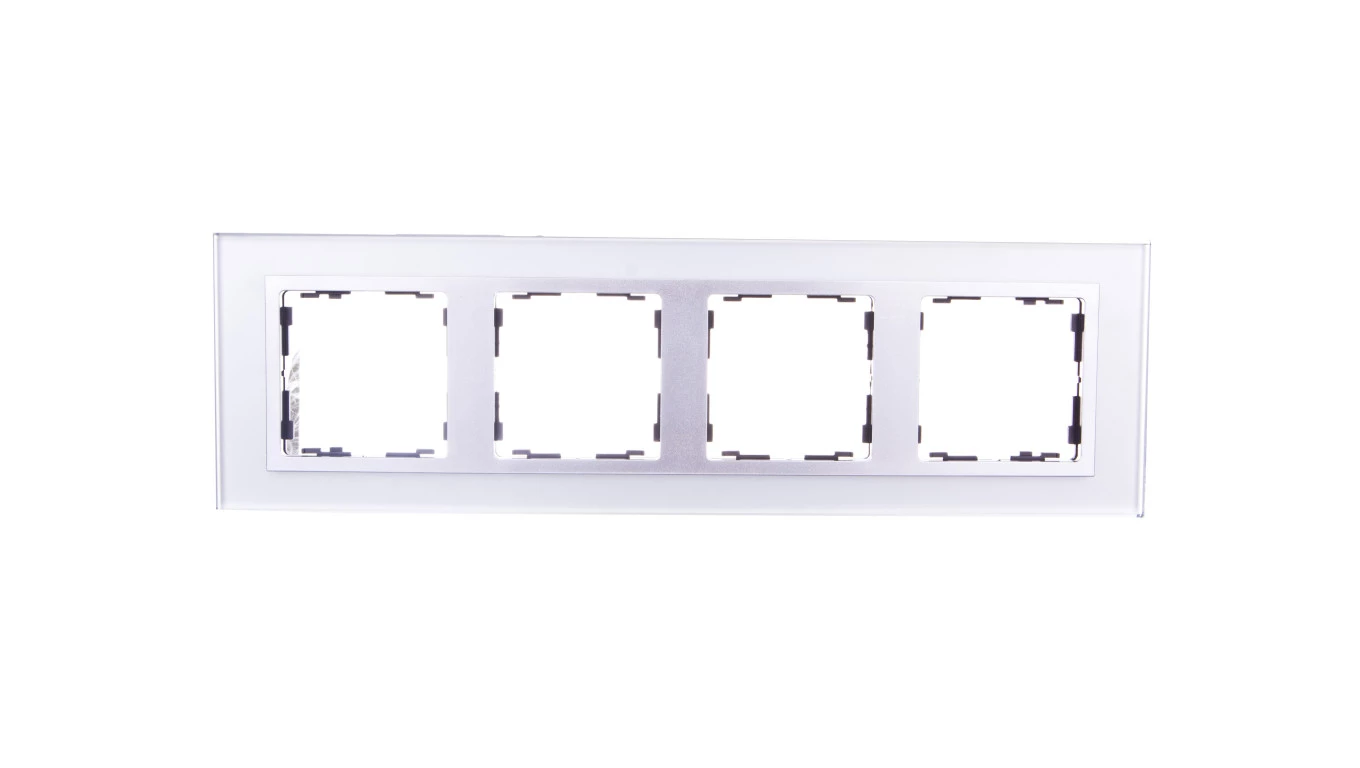 Simon 82 Ramka poczwórna pozioma szklana srebro/ ramka pośrednia aluminium mat 82947-62
