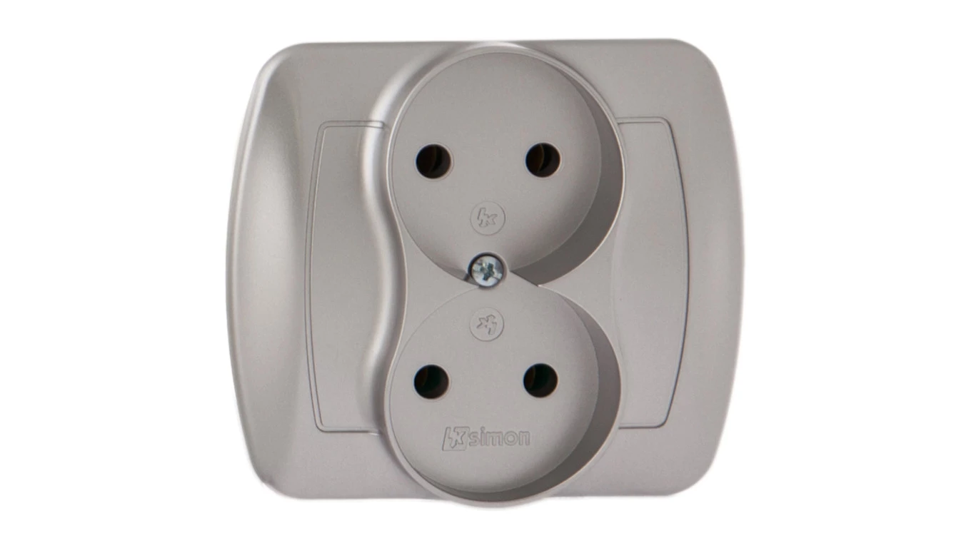 Simon Akord Gniazdo podwójne b/u 16A IP20 aluminium metalizowane AG2/26