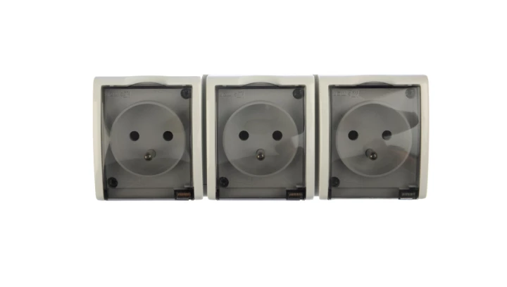 Simon Aquarius Gniazdo hermetyczne potrójne z/u IP54 z klapką dymną białe AQGZ1-3/11a