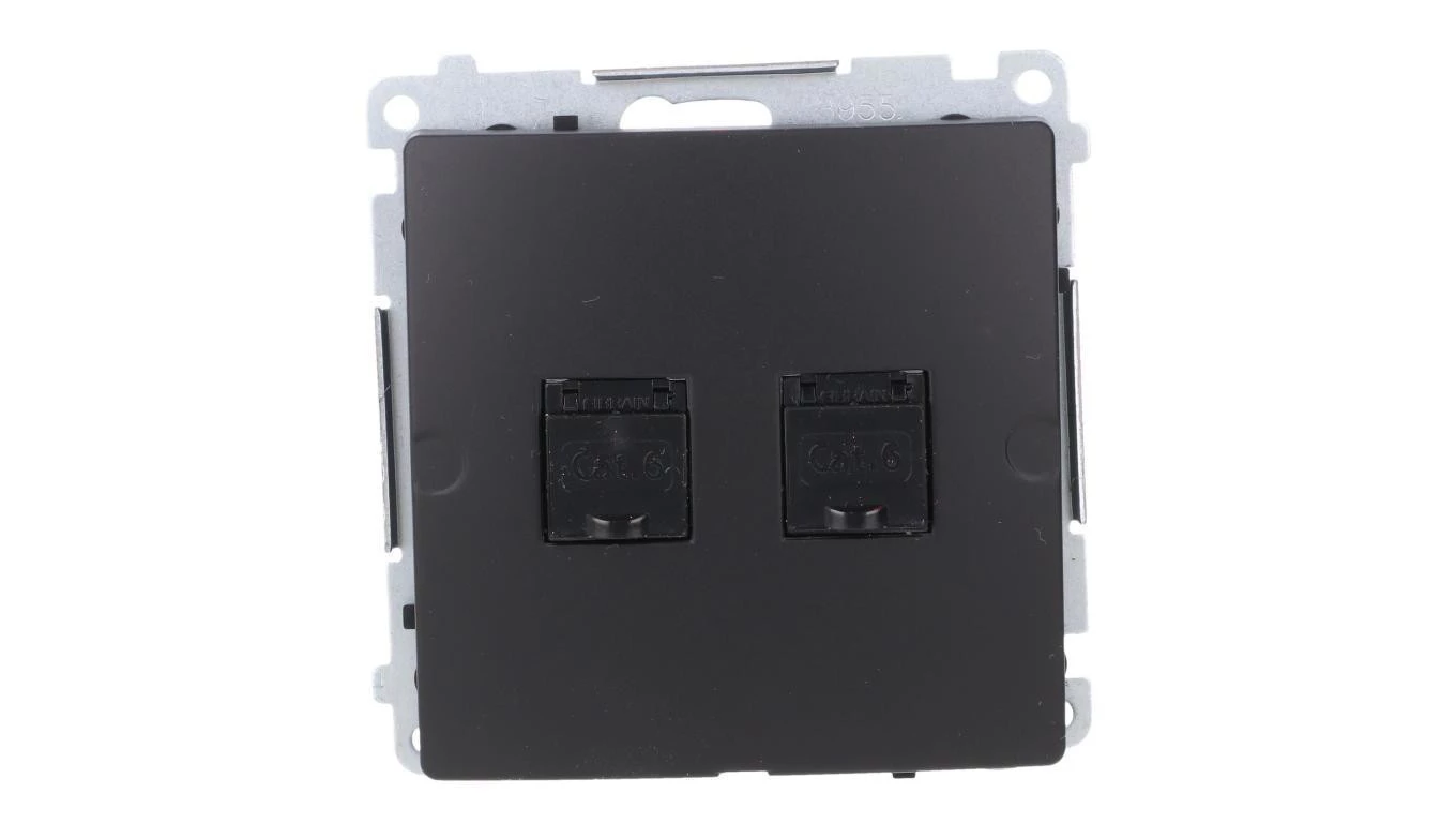 Simon Basic Gniazdo komputerowe RJ45, kat 6, podwójne z przesłoną przeciwkurzową (moduł) czarny BM62.01/49