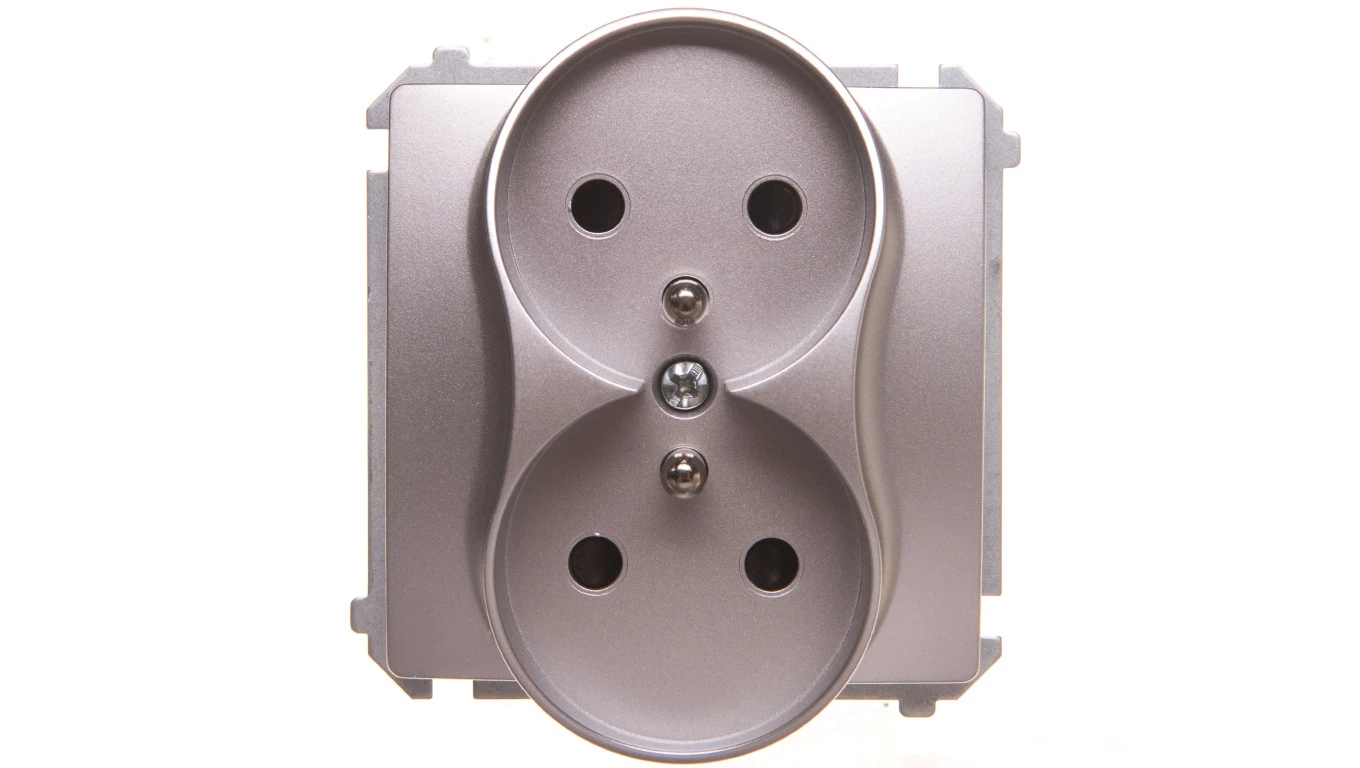 Simon Basic Gniazdo podwójne z/u z przesłonami srebrny mat BMGZ2Mz.01/43