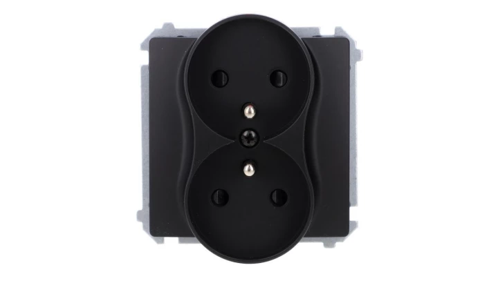Simon Basic Gniazdo wtyczkowe podwójne z uziemieniem (moduł), z przesł. torów prądowych, zaciski śrubowe czarny BMGZ2MZ.01/49