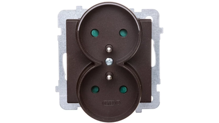 SONATA Gniazdo podwójne z/u z przesłonami czekoladowy metalik GP-2RRZP/m/40