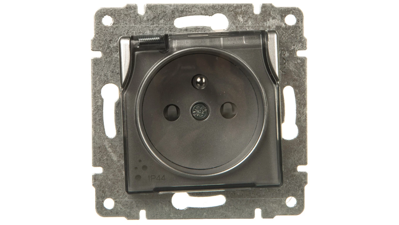 VENA Gniazdo bryzgoszczelne z/u IP44 z przesłonami klapka transparentna aluminium 514039