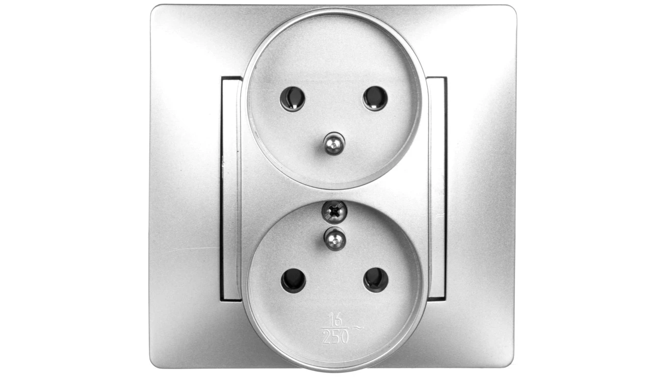 VOLANTE Gniazdo podwójne z/u 16A 230V modułowe srebrne 2643-06