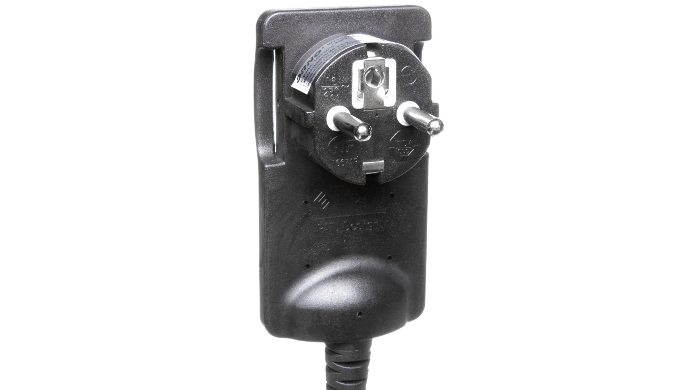 Wtyczka płaska kątowa 2P 16A 250V z przewodem 1,5m, czarna OR-AE-1312/B