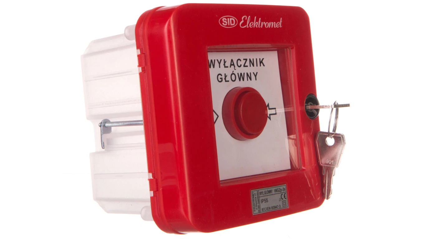 Wyłącznik alarmowy z zamkiem 2R 12A /WYŁĄCZNIK GŁÓWNY/ IP55 WGZp-3s 921542