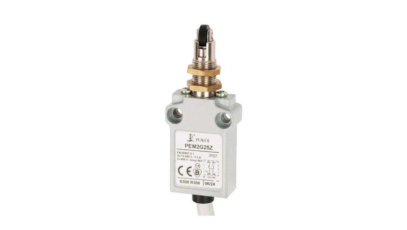Wyłącznik krańcowy 1R 1Z wolnoprzełączający rolka z tworzywa Ø10,7 z mocowaniem za gwintowaną głowicę PEM2G25X A37-B91X