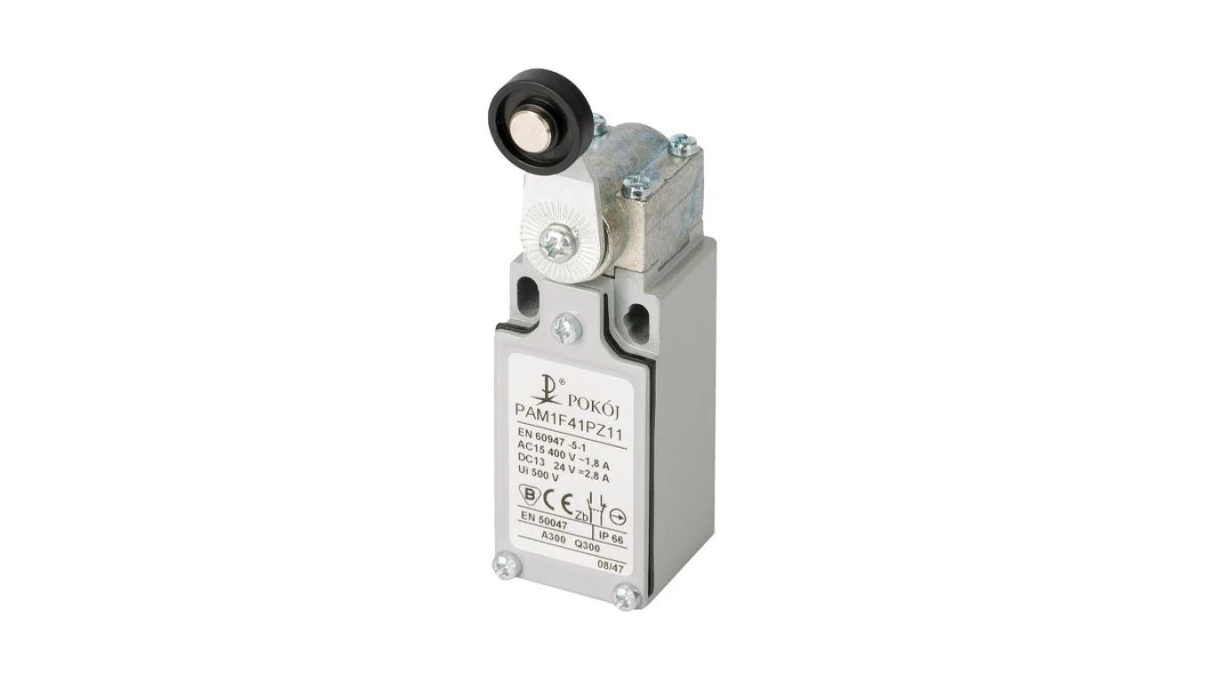 Wyłącznik krańcowy 2R wolnoprzełączający dźwignia z rolką z tworzywa sztucznego Ø18 PAM1F41PW02 A37-4674