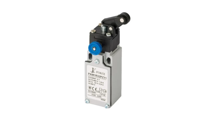 Wyłącznik krańcowy 2R wolnoprzełączający popychacz stalowy dźwignia pionowa z rolką Ø12,5 z resetem PAM1R32PW02 A37-4R44