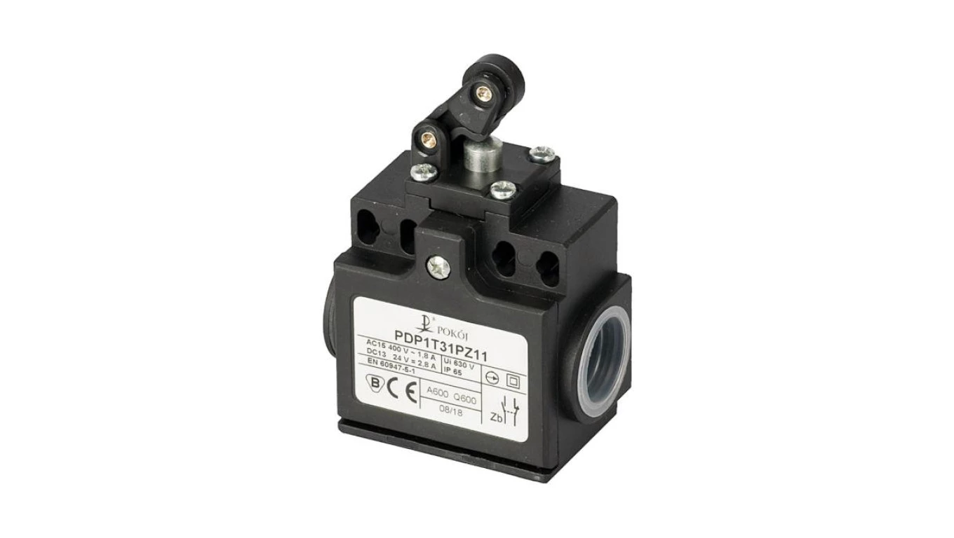 Wyłącznik krańcowy 2R wolnoprzełączający popychacz stalowy dźwignia pozioma z rolką Ø12,5 PDP1T31PW02 A37-6054