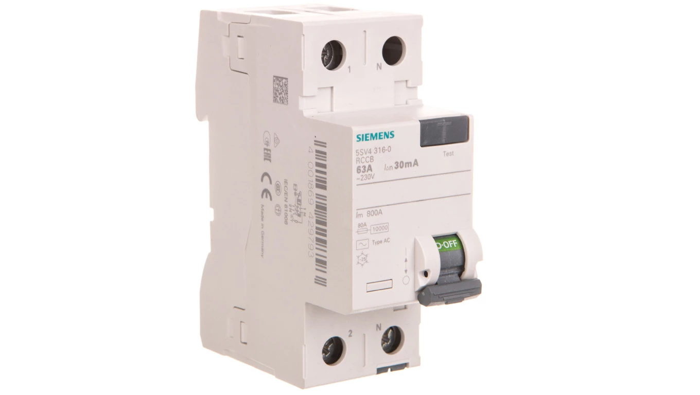 Wyłącznik różnicowoprądowy 2P 63A 0,03A Typ AC 30mA 230V 5SV4316-0