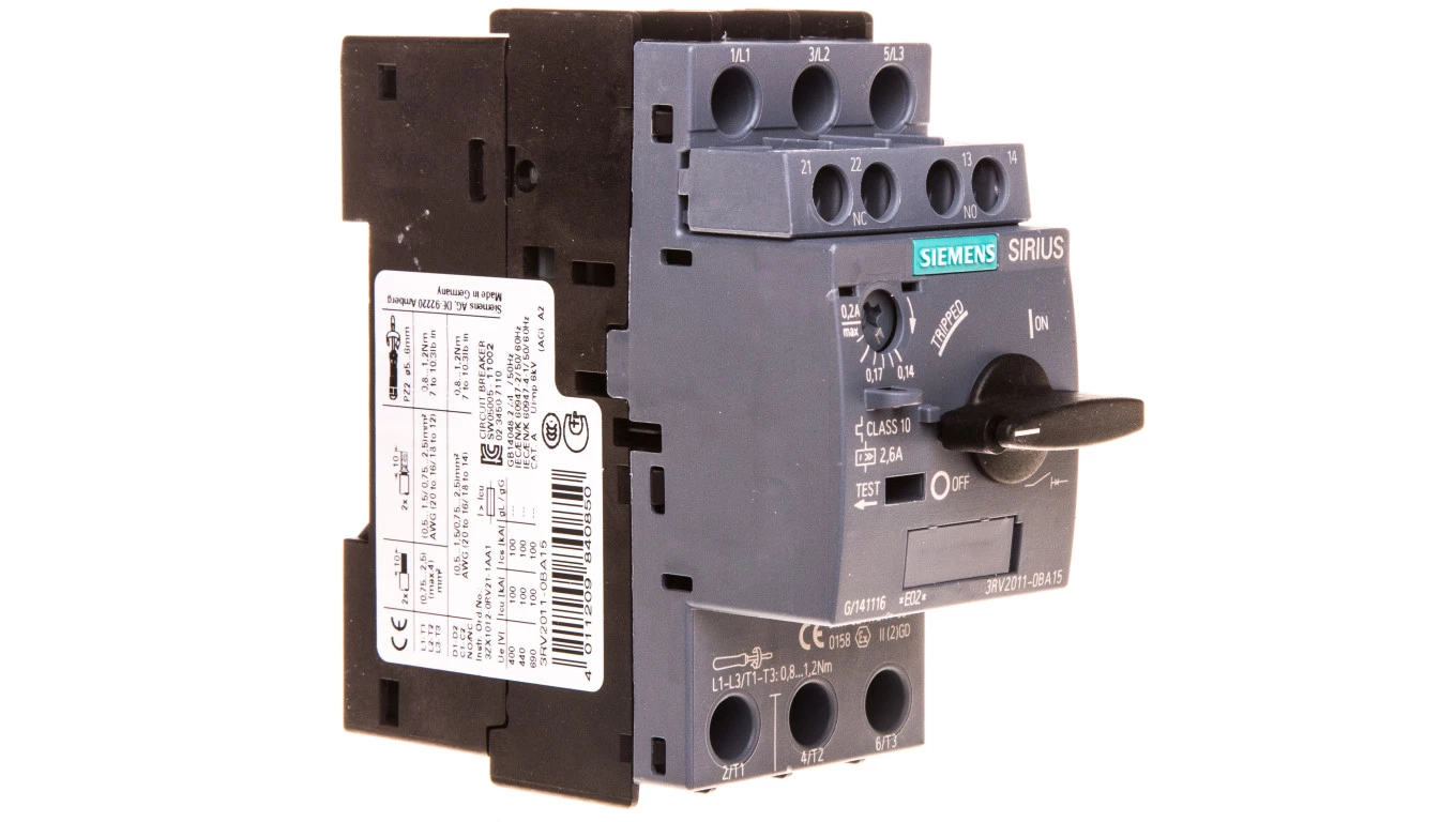 Wyłącznik silnikowy 3P 0,14-0,2A 1Z 1R S00 3RV2011-0BA15