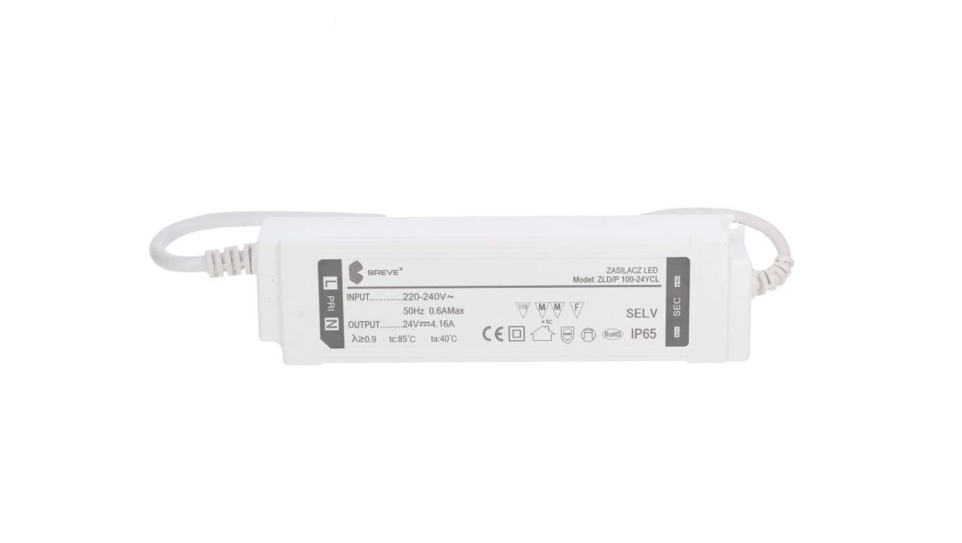 Zasilacz LED 24V DC 100W 4,16A IP65 /z zabezpieczeniami/ ZLDP 100-24YCL 19724-9023
