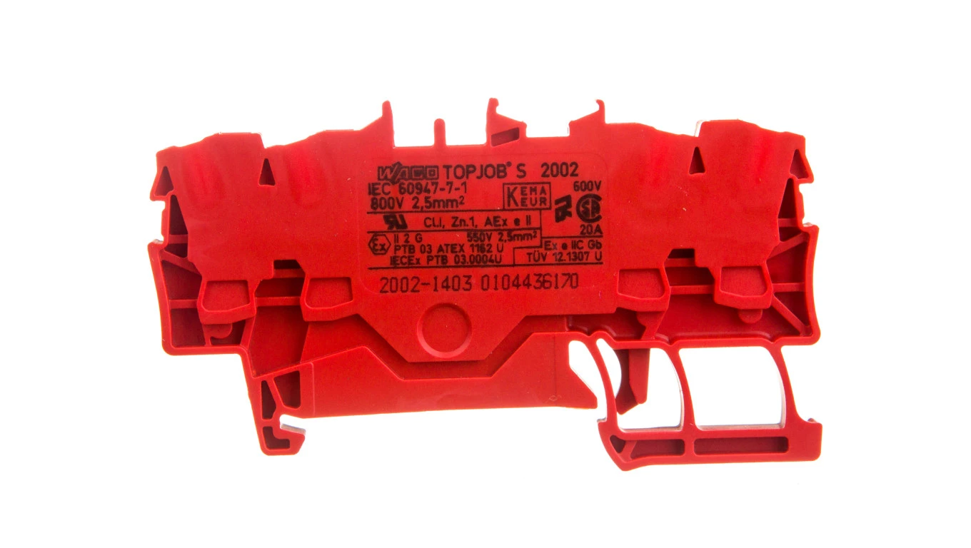 Złączka szynowa 4-przewodowa 2,5mm2 czerwona 2002-1403 TOPJOBS